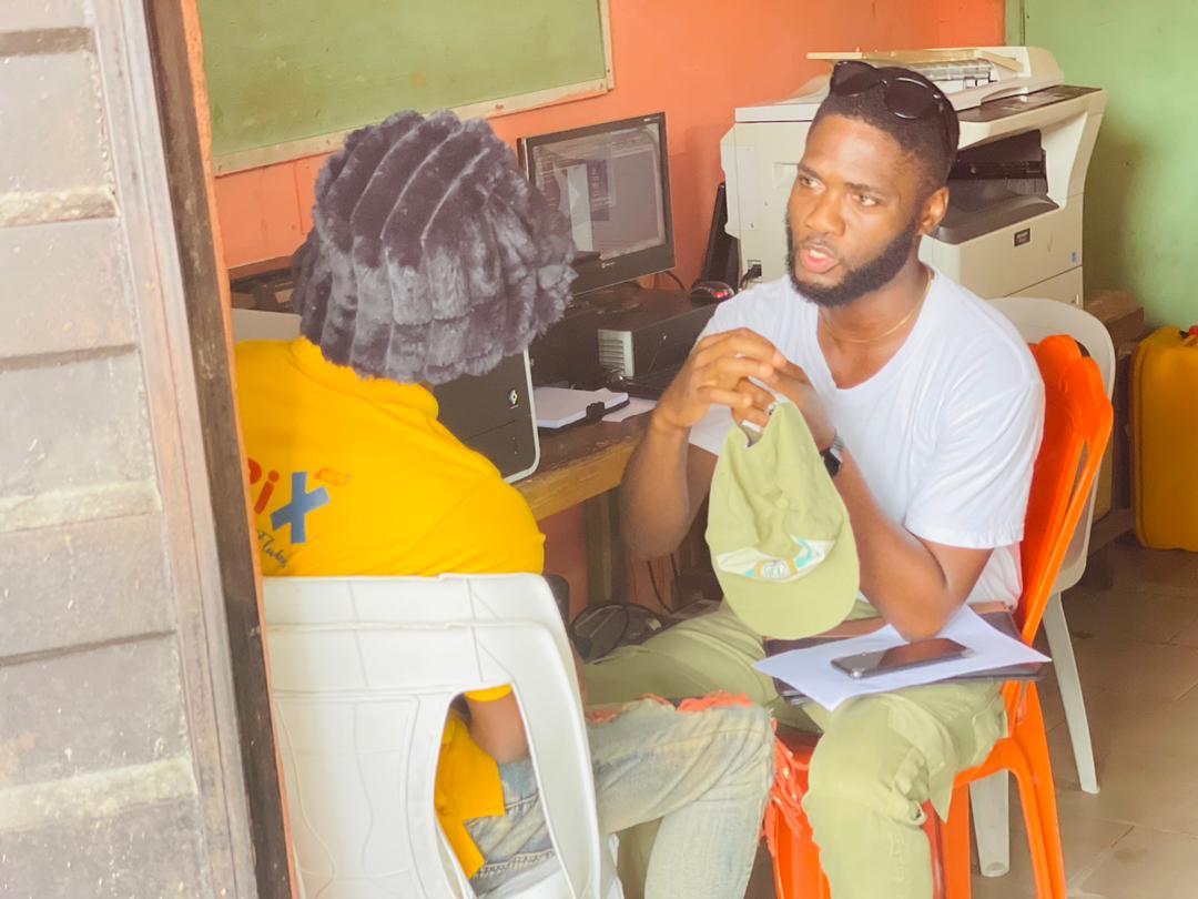 Ifeanyi, as a Youth Corper and Chairman of the Regulatory and Compliance Committee of the Legal Aid Community Development Service, actively engaging with community members during a public sensitisation program.