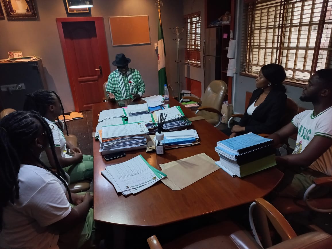 Ifeanyi, alongside fellow Youth Corpers, in a closed-door meeting with the Honourable Attorney-General and Commissioner for Justice, Bayelsa State, Biriyai Dambo, SAN.