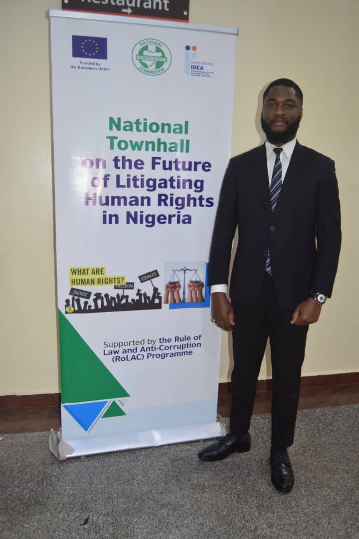 Ifeanyi at the National Townhall on the Future of Litigating Human Rights in Nigeria. The event was organized by the National Human Rights Commission and the International Institute for Democracy and Electoral Assistance, with funding provided by the European Union.