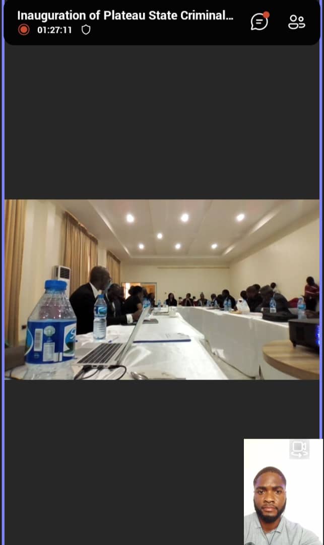 Ifeanyi virtually representing the Administration of Criminal Justice Academy, an associated institution of Juritrust Centre for Socio-legal Research and Documentation, at the inauguration of the Plateau State Criminal Law Reform Committee. This exclusive invitation was in recognition of Juritrust's role as a key collaborative stakeholder in Plateau State's criminal justice framework