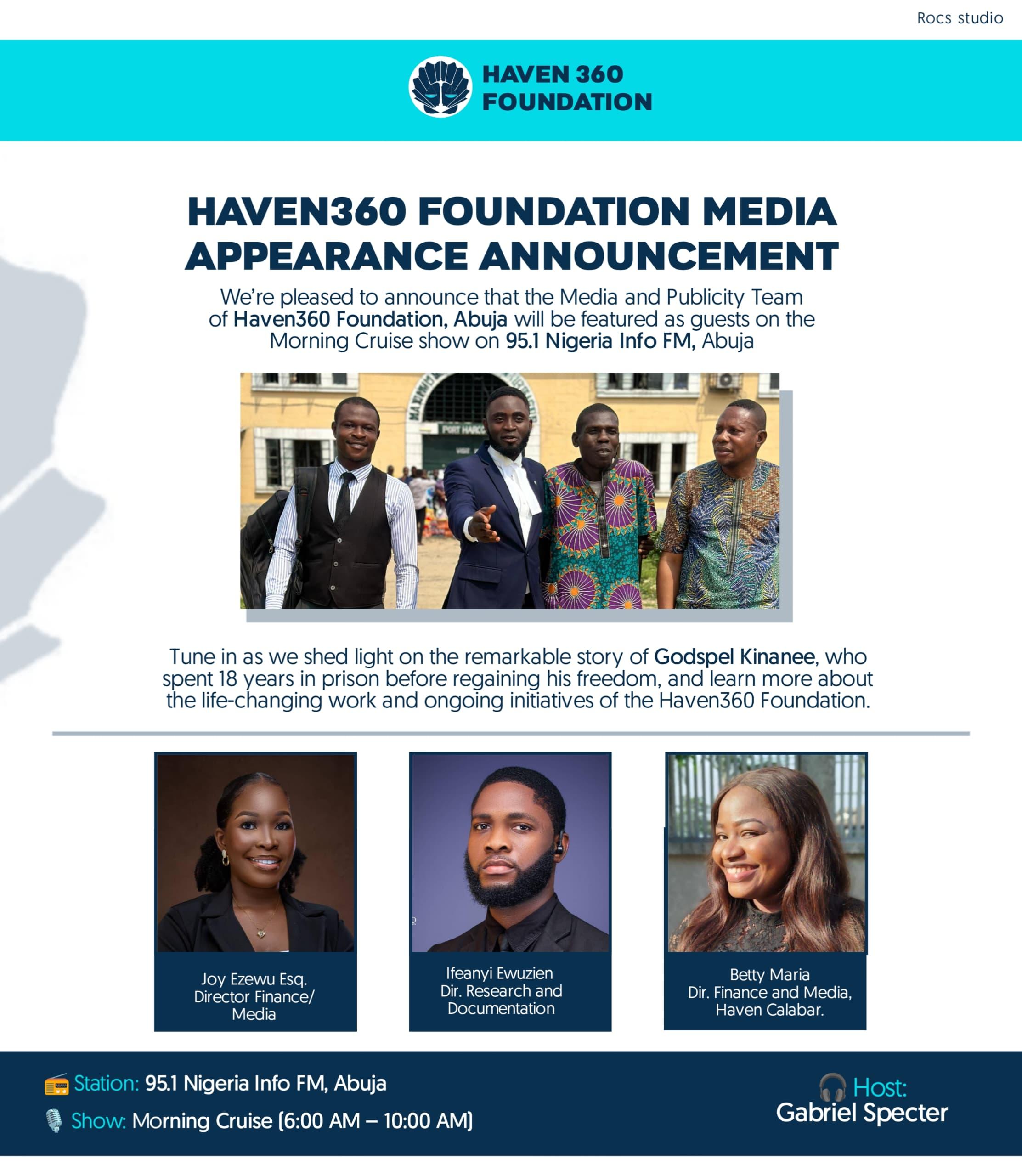 Nigeria Info FM, Abuja, hosts Ifeanyi alongside other members of Haven360 Foundation.